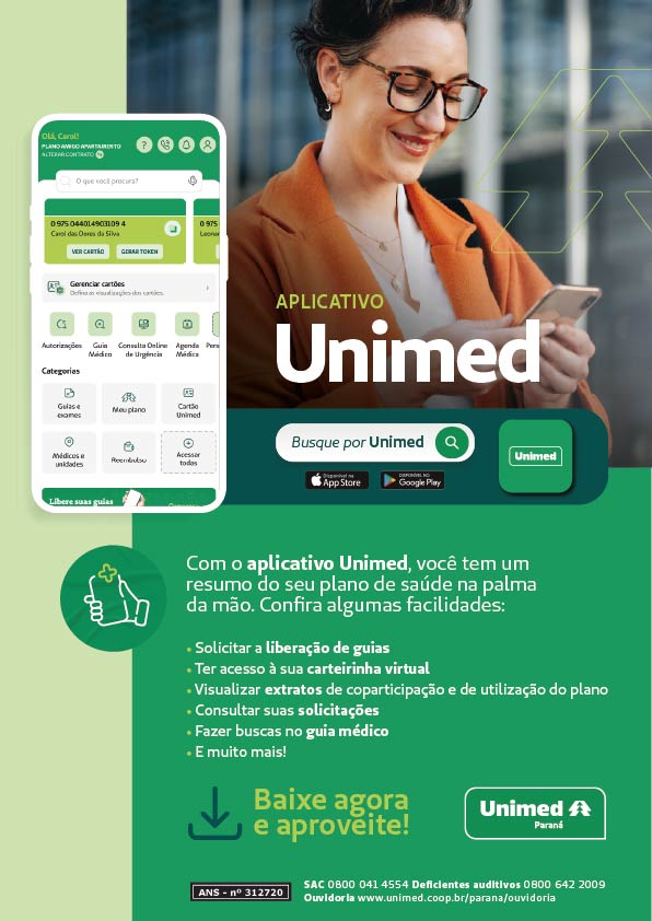 📲 Com o Aplicativo Unimed, você tem um resumo do seu plano de saúde na palma da mão.
