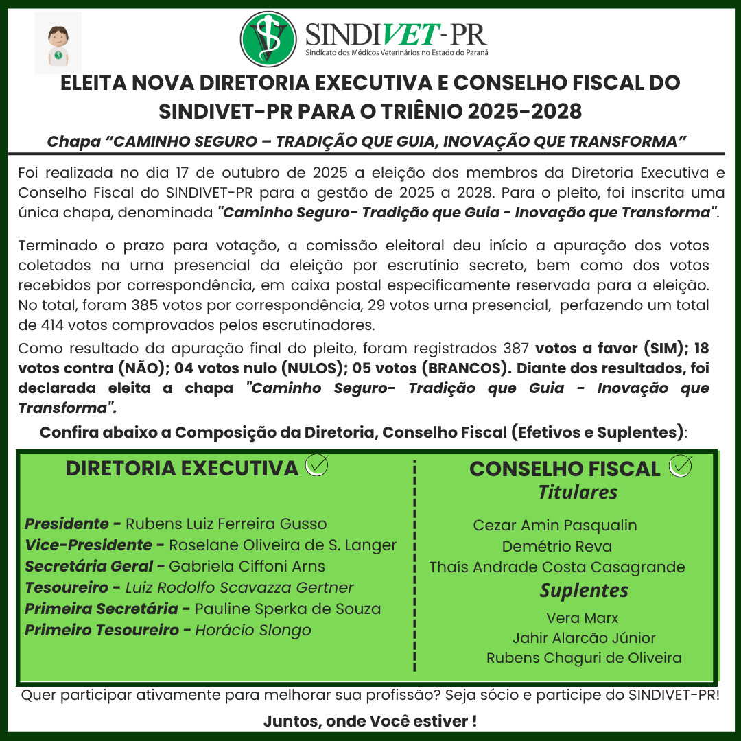RESULTADO DAS ELEIÇÕES DO SINDIVET-PR